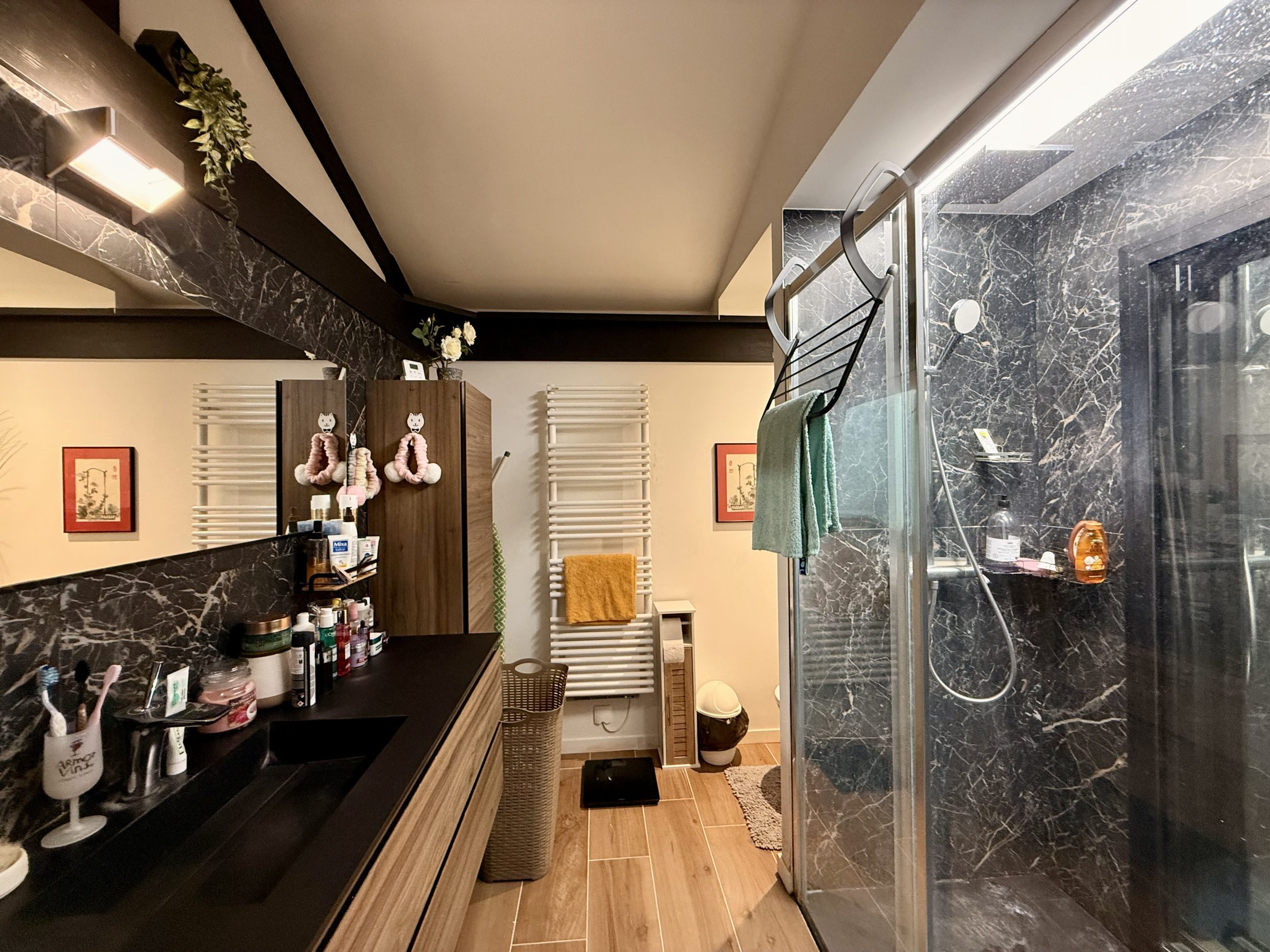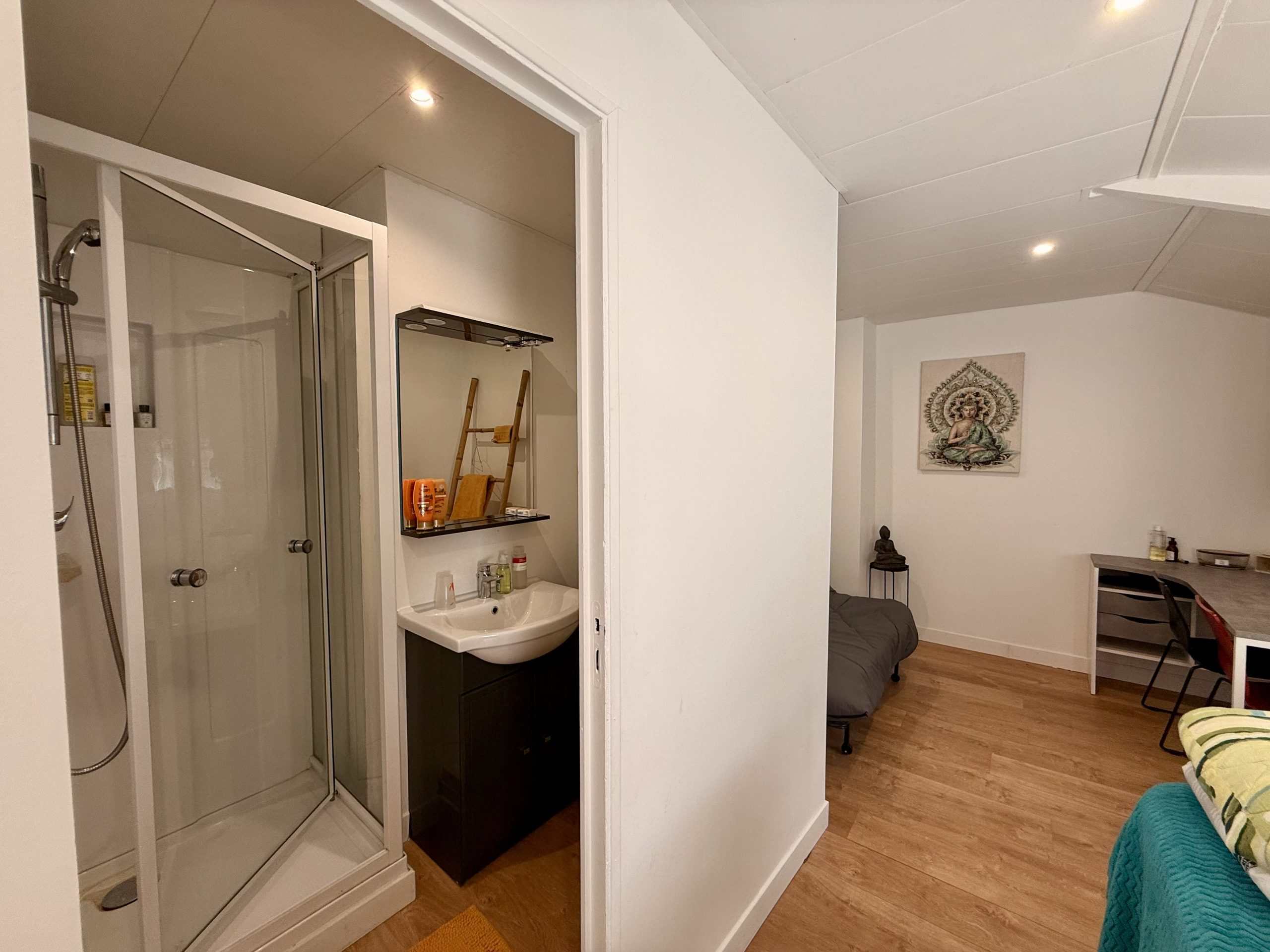 Une chambre d’ami avec salle d’eau et toilettes vient enrichir cet espace, offrant confort et autonomie à vos invités.